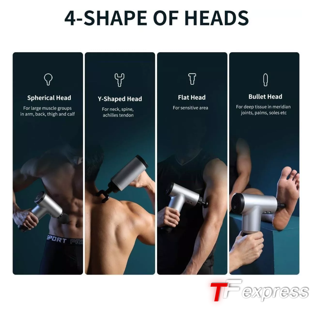 Cuenta con 6 intensidades y 4 cabezales intercambiables para diferentes partes del cuerpo, lo que te permite adaptar el masaje a tus necesidades específicas. Su velocidad de rotación varía entre 2100 y 3600/min, lo que te permite ajustar la intensidad y cambiar la cabeza de masaje según las diferentes partes del cuerpo.